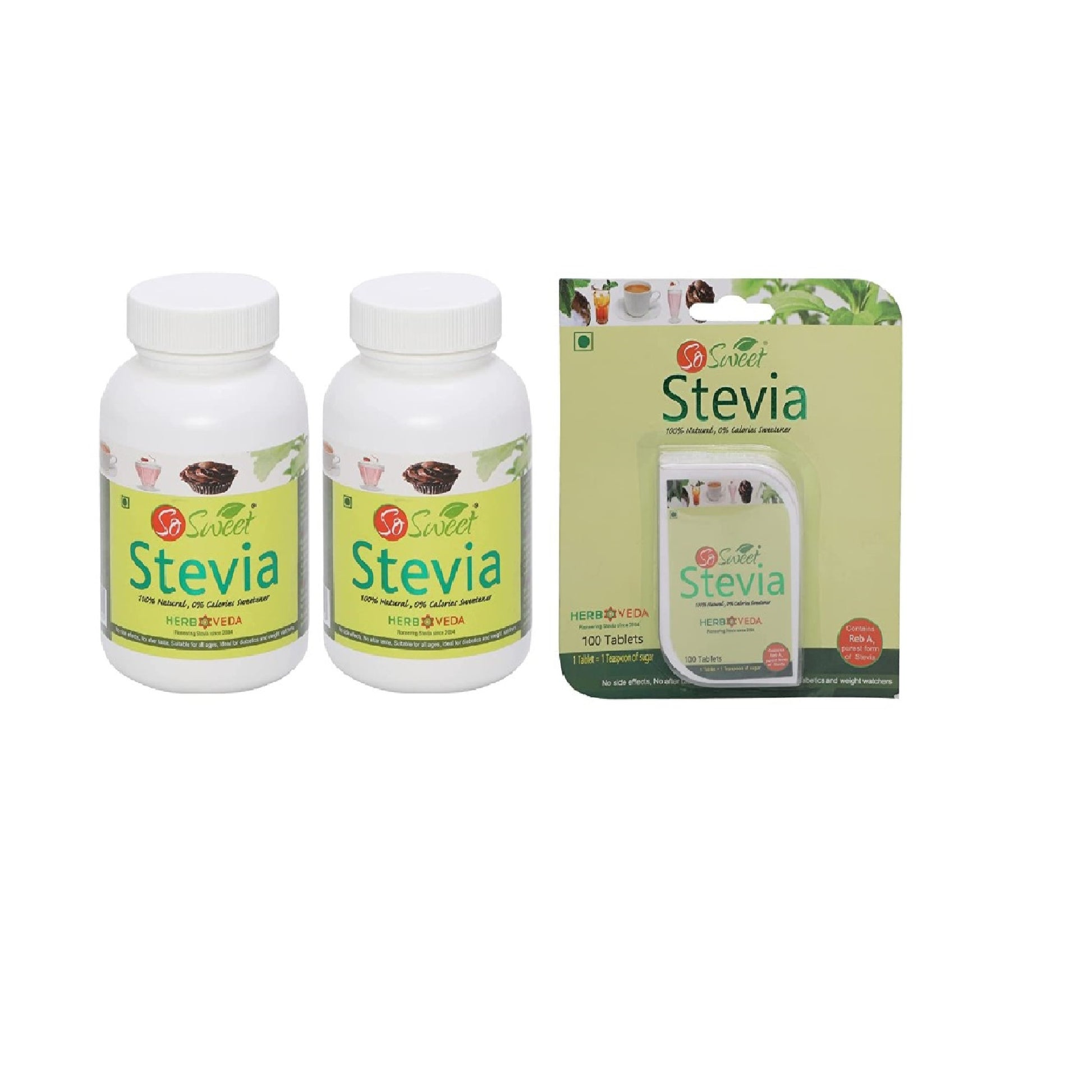 So Sweet Stevia Tablets are 100% Natural Sweetener with Zero Calories here to make your life sweeter without compromising your health . Stevia Sugar Free Tablet is a completely natural sweetener derived from the stevia plant. Diabetics can use stevia because it contains no calories and has no effect on blood sugar levels. It has no bitter aftertaste, so it can be used to add the perfect amount of sweetness. It checks all the health boxes because it is a Zero calorie and diabetic friendly, has no added sugar · So Sweet Stevia extract is made using the purest extract of stevia called rebaudiana (Reba) and is a healthy way to sweeten food & Beverages. It is the best NATURAL alternative to sugar.