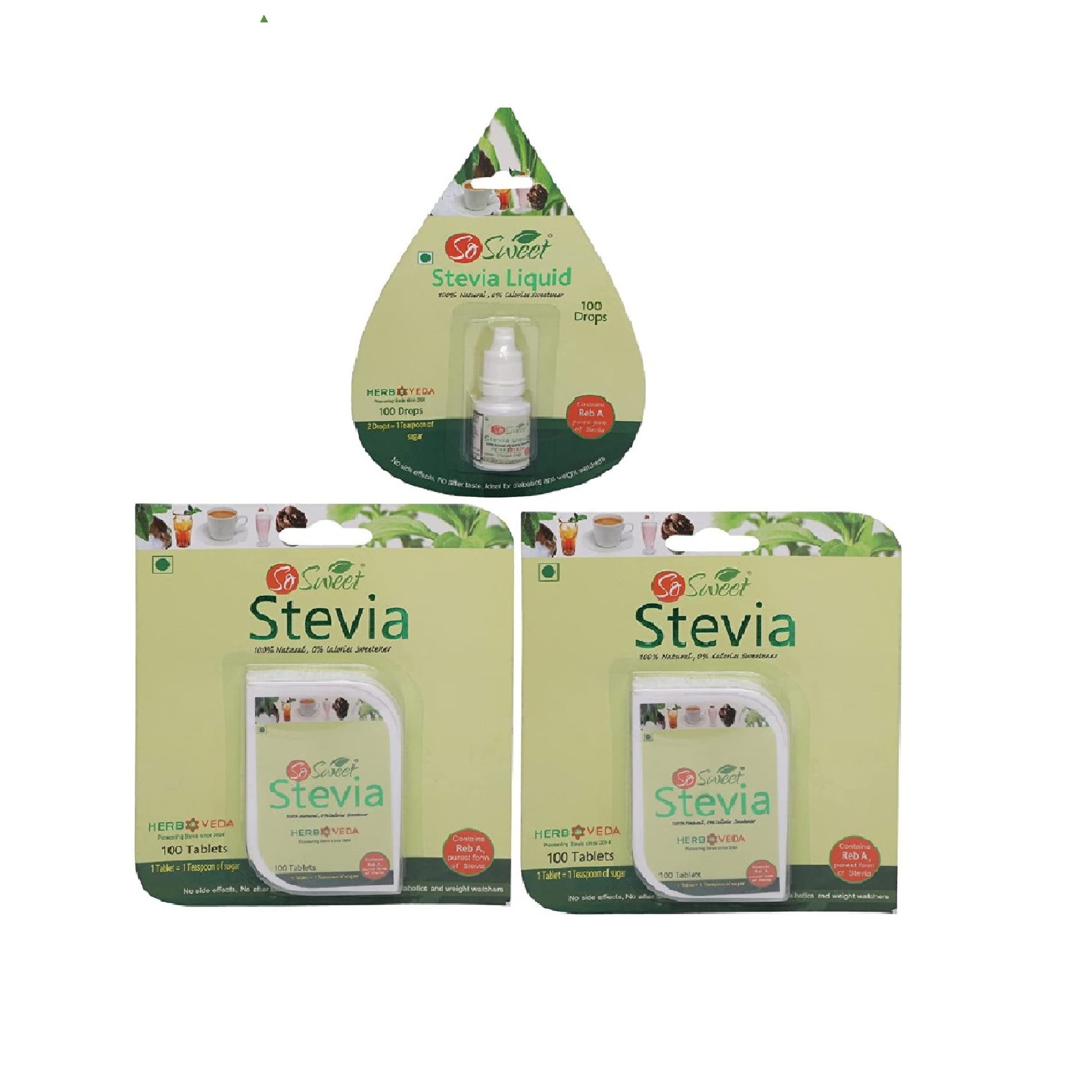 So Sweet Stevia Tablets are 100% Natural Sweetener with Zero Calories here to make your life sweeter without compromising your health Stevia Sugar Free Tablet is a completely natural sweetener derived from the stevia plant."So Sweet Stevia liquid drop are zero calorie sweetener and taste just like a sugar. Stevia is also known to sugar free / alternative of sugar. It can be used in Homes, Offices, Cafes, Hotels, Restaurants, Railways, Hospitals and any other place where the consumers are conscious for his/ her health. This miraculous creation of natural elements support to improvement of human health.