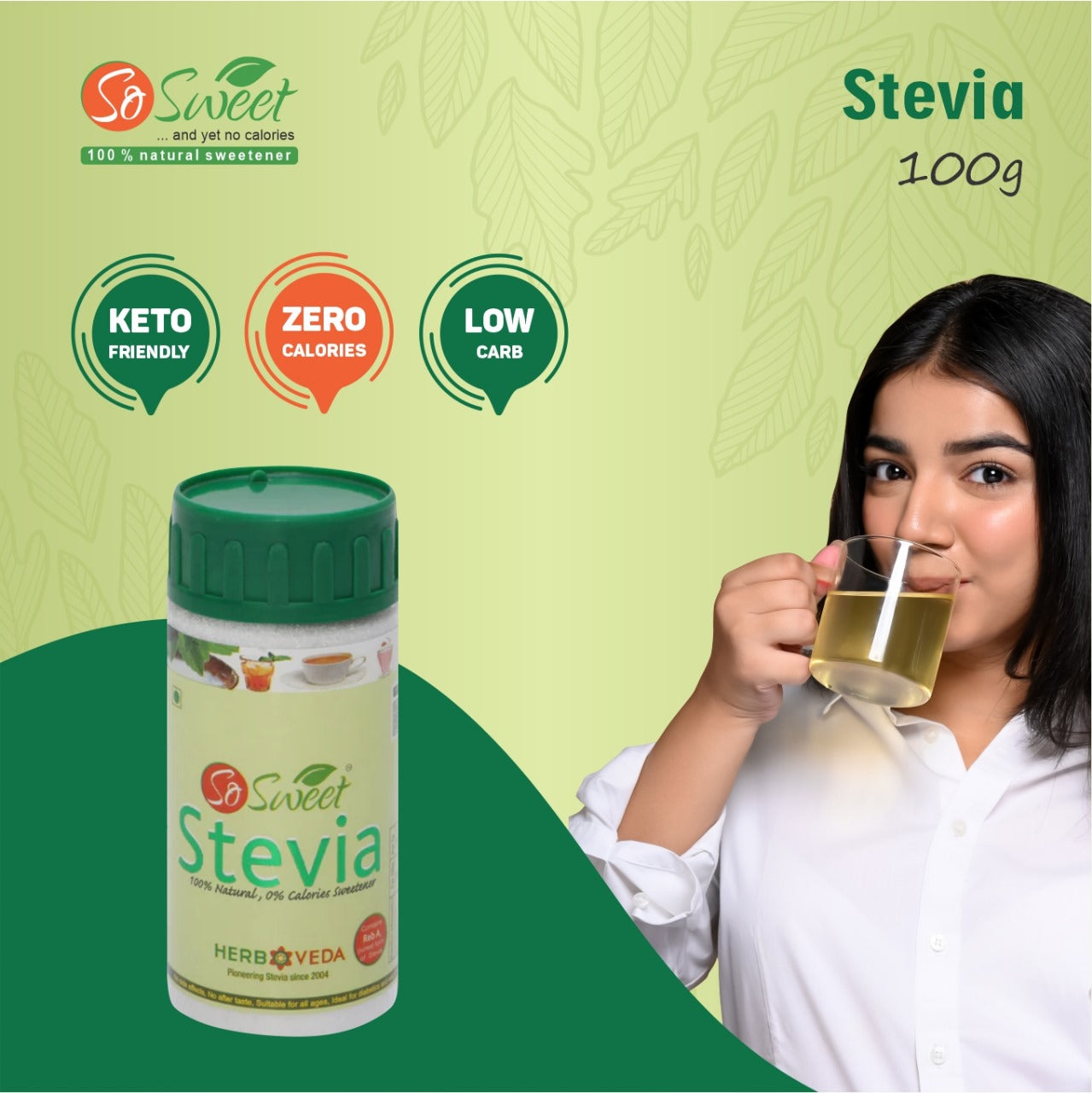 Ans. Stevvi Sugar Free is enriched with the benefits of organic ingredients like Erythritol and Rebaudioside A 97% etc.