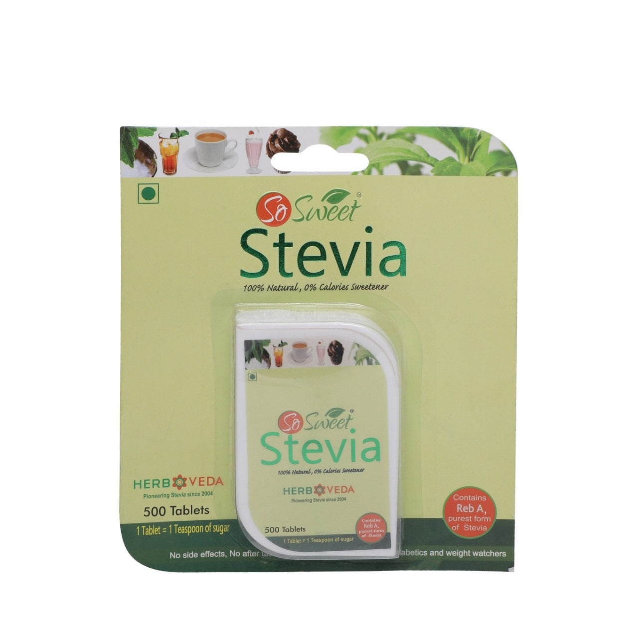 So Sweet Stevia Tablets are 100% Natural Sweetener with Zero Calories here to make your life sweeter without compromising your health Stevia Sugar Free Tablet is a completely natural sweetener derived from the stevia plant. Diabetics can use stevia because it contains no calories and has no effect on blood sugar levels. It has no bitter aftertaste, so it can be used to add the perfect amount of sweetness. It checks all the health boxes because it is a Zero calorie and diabetic friendly, has no added sugar. Take your smarter approach to sweetness with you wherever you go by keeping your healthy sugar companion with you. So, from now onwards, refrain from subjecting yourself to the ordeal of drinking sugarless tea and coffee. You can use these to your hot and a cold drink. The primary ingredient in these is derived from the stevia plant, which has naturally sweetened leaves
