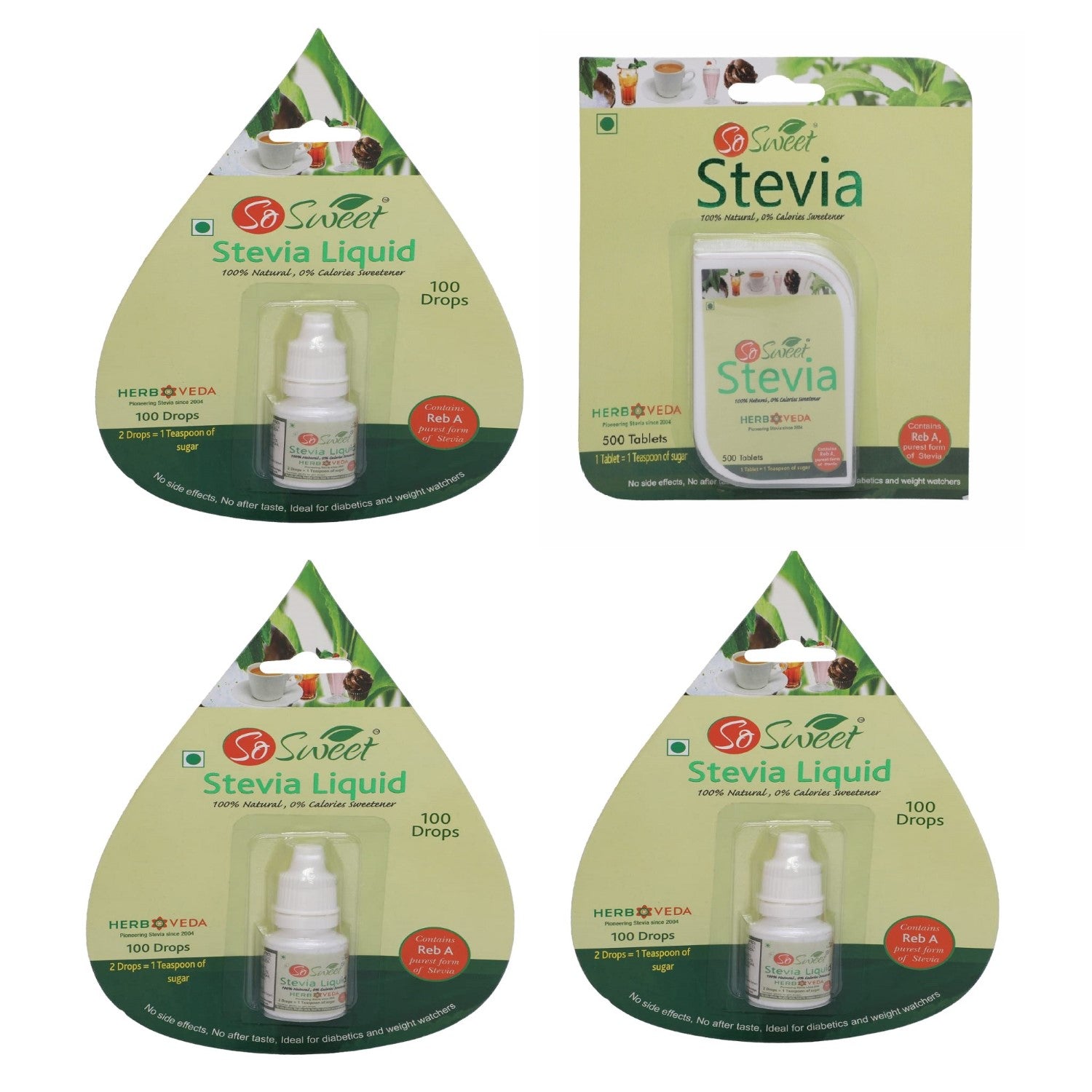 So Sweet Stevia Combo of 500 Stevia Tablets & 300 Drops Natural Sweetener Sugarfree
