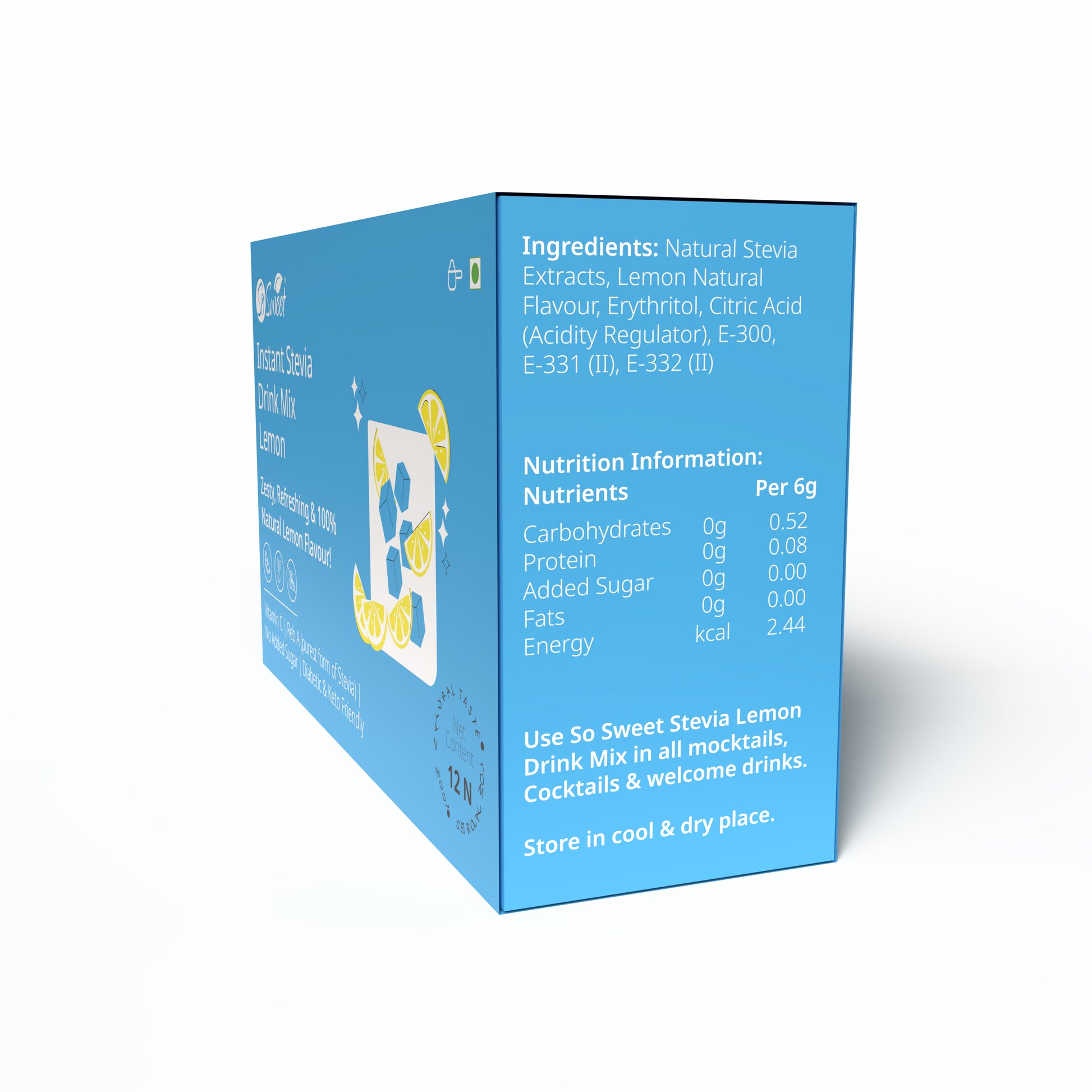 Natural Stevia Extracts,Lemon Natural Flavour , Erythritol Citric Acid (Acidity Regulator ), E-300, E-331, (11), E-332(11)