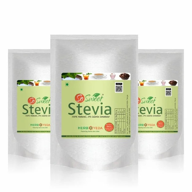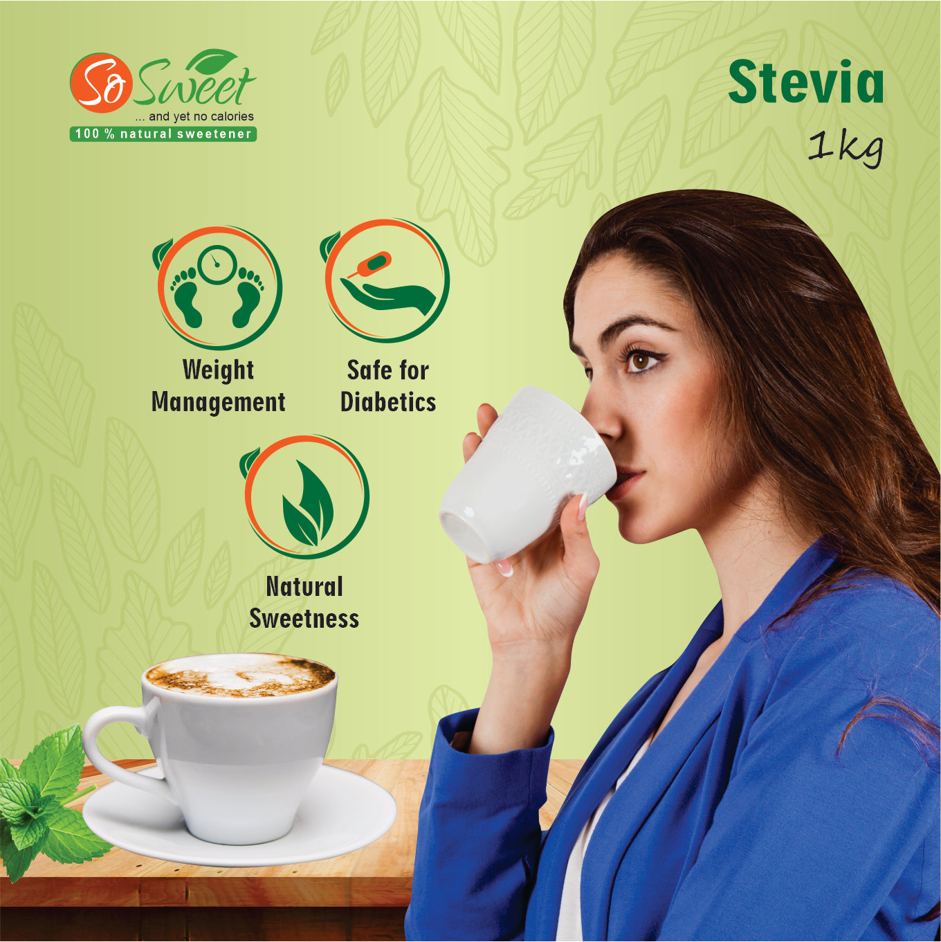 So Sweet Stevia Natural Sweetener with Zero Calories is here to make your life sweeter without compromising your health So Sweet Stevia is a completely natural sweetener derived from the stevia plant. Diabetics can use stevia because it contains no calories and has no effect on blood sugar levels. It has no bitter aftertaste, so it can be used to add the perfect amount of sweetness. It checks all the health boxes because it is vegan-friendly, has no added sugar, and is low in calories Take your smarter approach to sweetness with you wherever you go by keeping your healthy sugar companion with you. So, from now onwards, refrain from subjecting yourself to the ordeal of drinking sugarless tea and coffee. You can use these to your hold and a cold drink. The primary ingredient in these is derived from the stevia plant, which has naturally sweetened leaves So Sweet Stevia is a well-liked sugar replacement that is made from the native stevia plant Stevia rebaudiana. People who want to cut back on calories and sugar in their diet frequently utilize this replacement. People are choosing healthier alternatives to sugar in greater numbers, and Stevia has become a well-liked option, especially among those who have diabetes. The natural, calorie-free sweetener may help to regulate blood sugar levels So eat your favorite food just by replacing your daily sugar with So Sweet Stevia without gaining any weight while you sit! JUST REPLACE YOUR REFINED SUGAR WITH SO SWEET STEVIA AND ENJOY YOUR PIZZA WITH ZERO CALORIES .