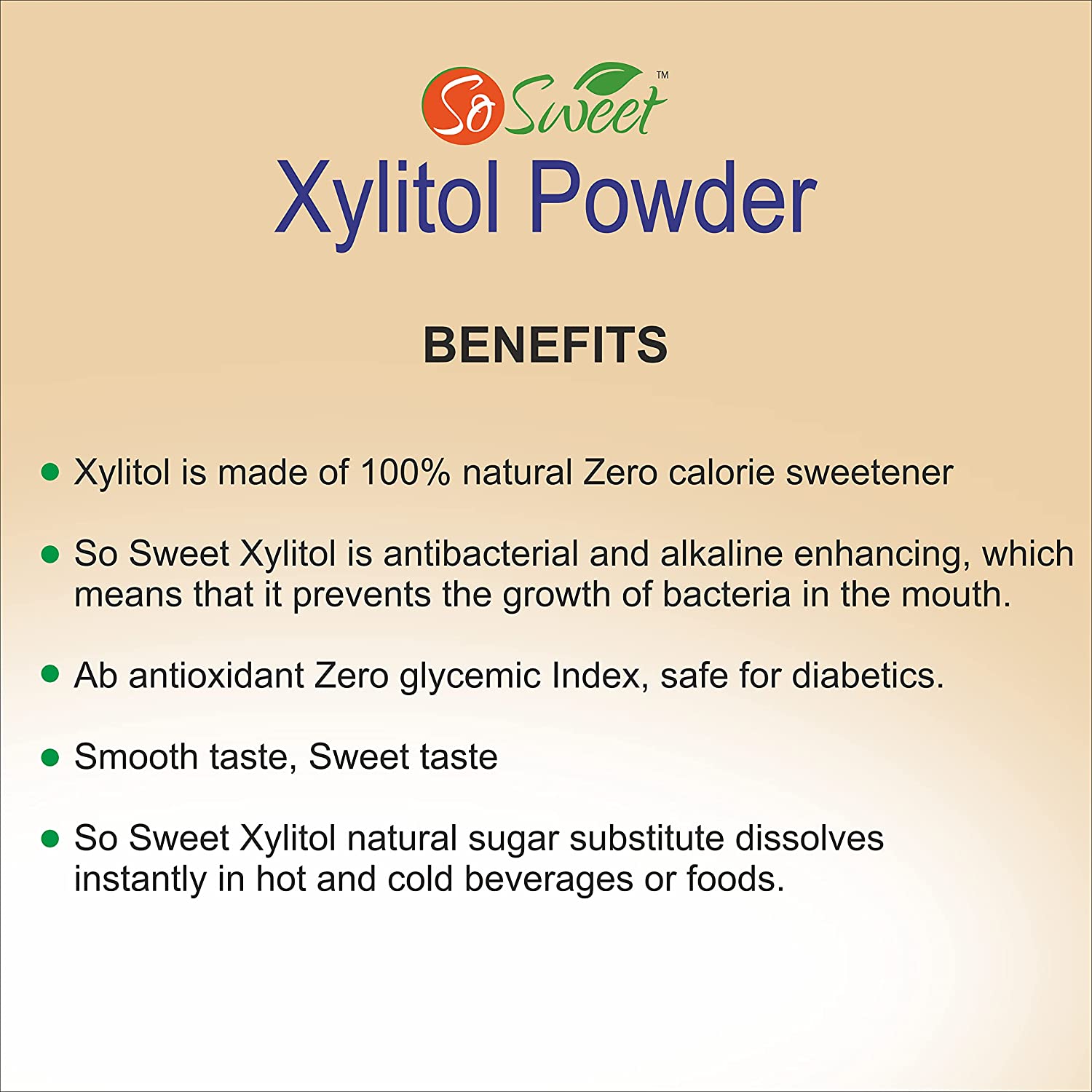 So Sweet Stevia Natural Sweetener with Zero Calories is here to make your life sweeter without compromising your health. So Sweet Stevia is a completely natural sweetener derived from the stevia plant. Diabetics can use stevia because it contains no calories and has no effect on blood sugar levels. It has no bitter aftertaste, so it can be used to add the perfect amount of sweetness. It checks all the health boxes because it is vegan-friendly, has no added sugar, and is low in calories . Xylitol is a sugar alcohol that occurs naturally in certain plants First produced in the 1800s. It was rediscovered during the cane sugar shortage of WWII and has been widely used since the 60s in Europe and Japan. This naturally sweet Xylitol has 75% less carbohydrate than cane sugar and is slowly absorbed and metabolized resulting in negligible changes in insulin levels. It has a low Glycaemic Index of 7 .