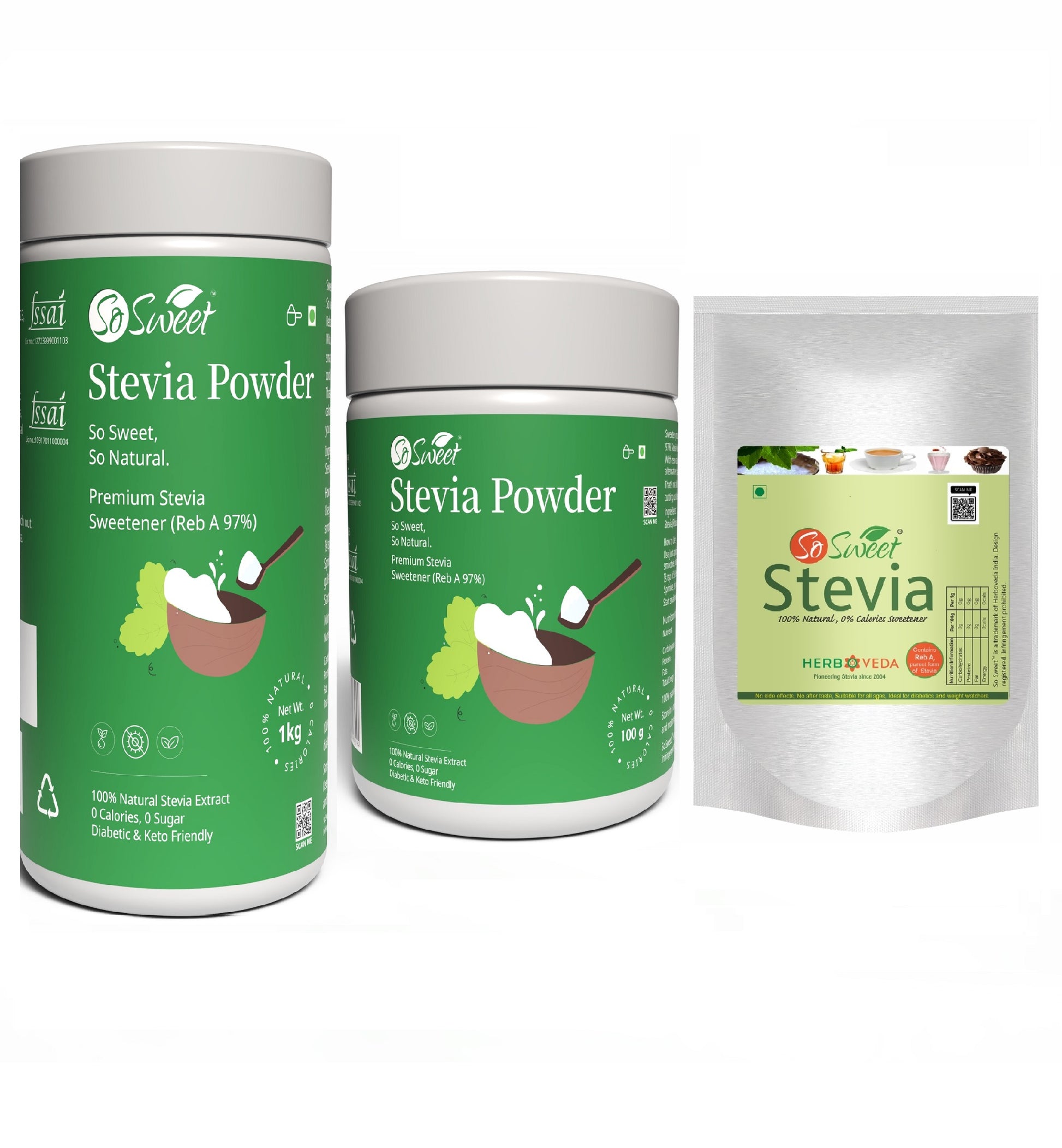 Ans. Stevvi Sugar Free is enriched with the benefits of organic ingredients like Erythritol and Rebaudioside A 97% etc.