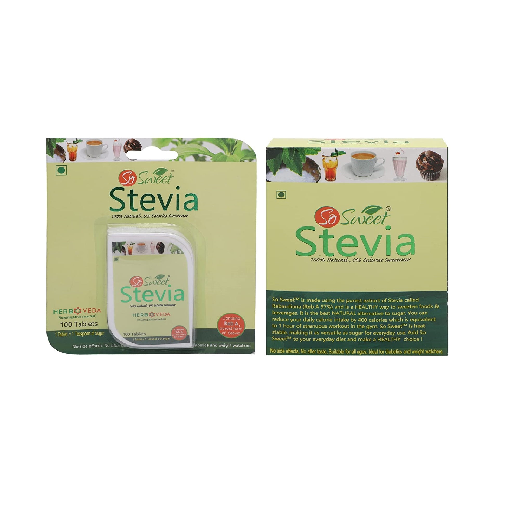 So sweet sachets are easy to use and perfect sugar substitute for daily life. It is a zero calorie sweetener. Add just 1 or 2 sachets in your beverages like tea/coffee/milk and cold beverages like juices and health drink. Stevia can help you cut down calories and is safe for EVERYDAY use. So Sweet Stevia is an ideal sugar substitute for Weight Watchers, Diabetics and Health Conscious people. So Sweet Stevia Tablets are 100% Natural Sweetener with Zero Calories here to make your life sweeter without compromising your health . Stevia Sugar Free Tablet is a completely natural sweetener derived from the stevia plant. Diabetics can use stevia because it contains no calories and has no effect on blood sugar levels. It has no bitter aftertaste, so it can be used to add the perfect amount of sweetness. It checks all the health boxes because it is a Zero calorie and diabetic friendly, has no added sugar.